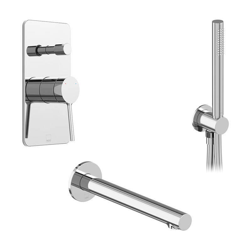 Zestaw prysznicowy z punktową słuchawką prysznicową i wylewką wannową - VADO - Safari - SAF-MBS-BS-CP