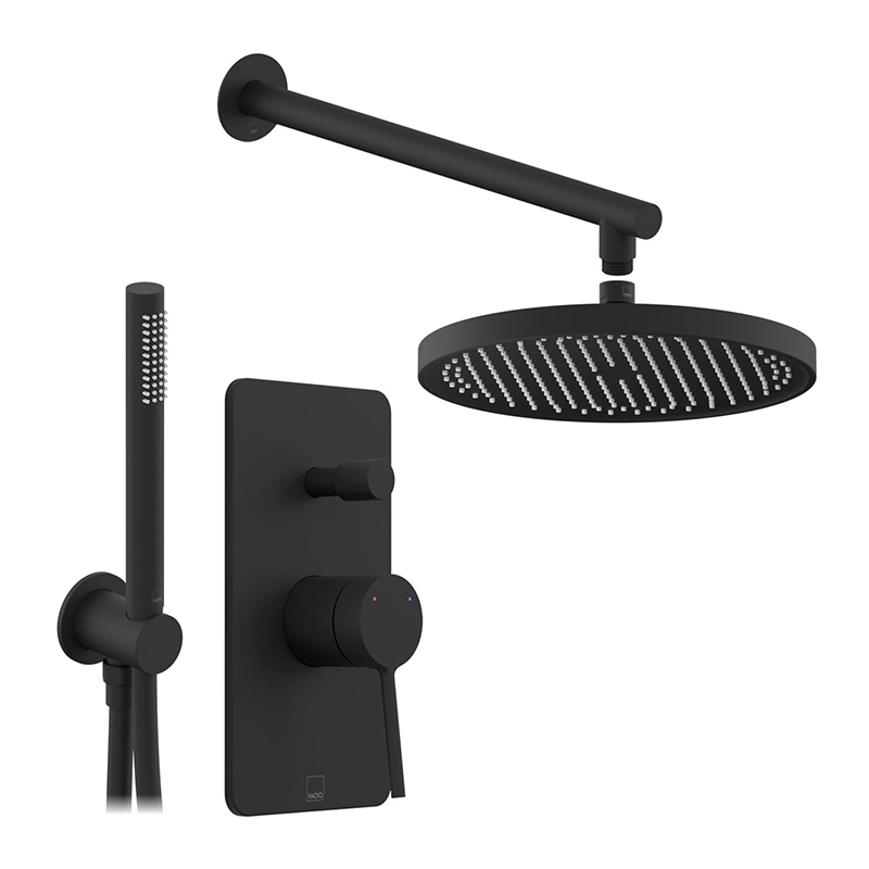 Zestaw prysznicowy z punktową słuchawką prysznicową i deszczownicą - VADO - Safari - SAF-MSS-SH-MB