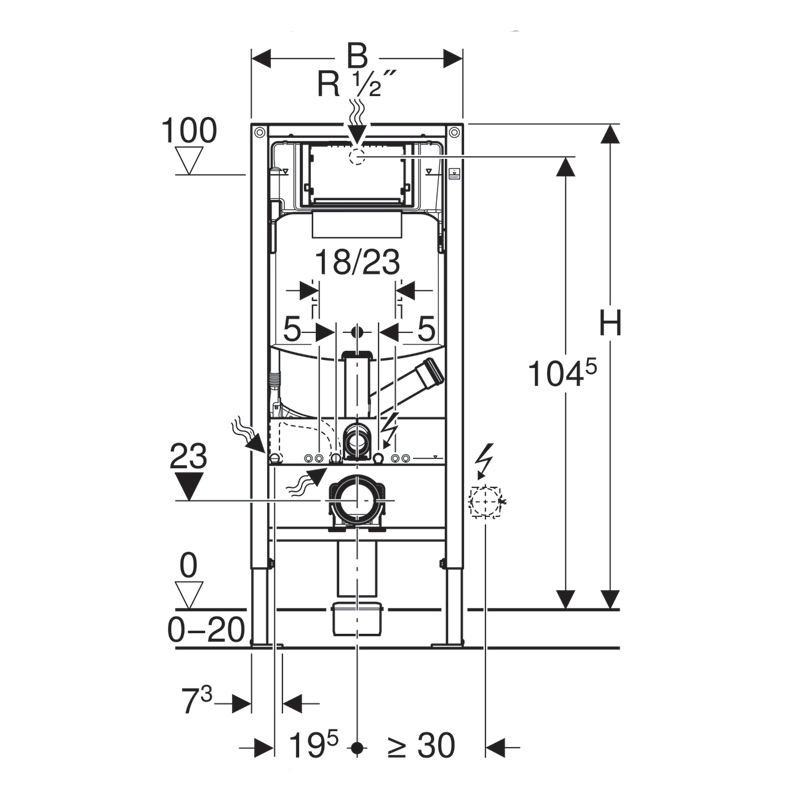 Zakres regulacji spłukiwania dużą ilością wody: 4,5 / 6 / 7,5 l