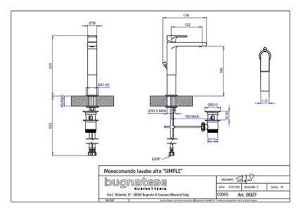 Bateria umywalkowa podwyższona - Bugnatese z kolekcji Simple - 6617 - biały matowy
