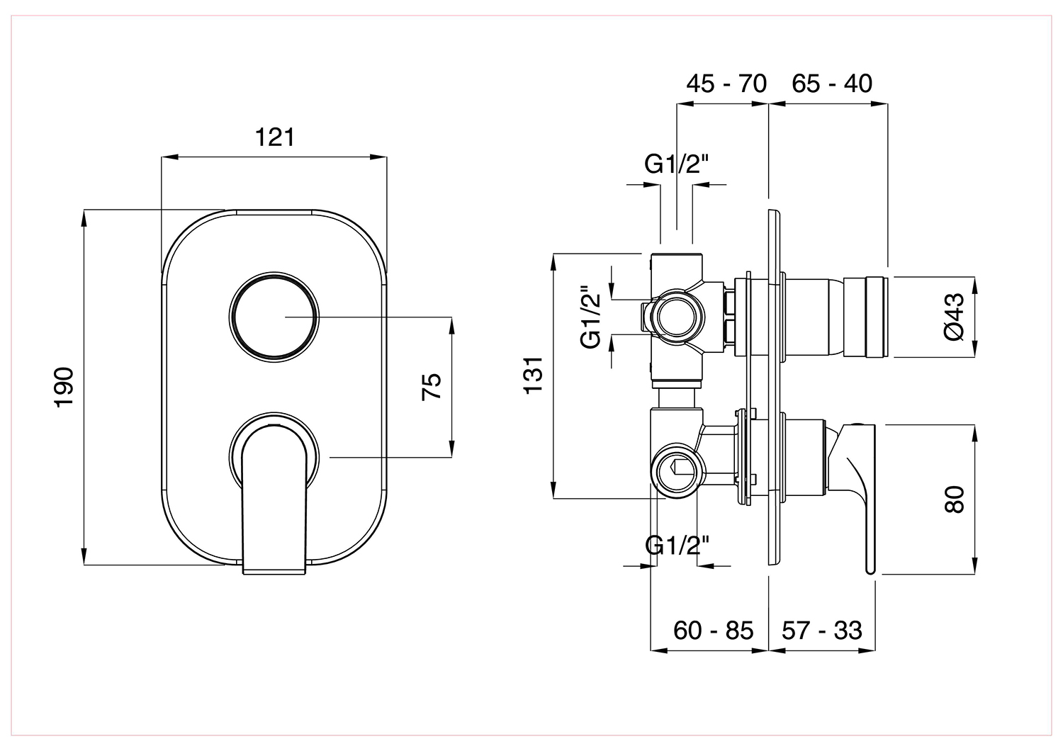 Bateria prysznicowa podtynkowa z przełącznikiem 4-drożnym