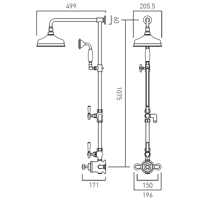 Montaż naścienny, rozstaw 150 mm