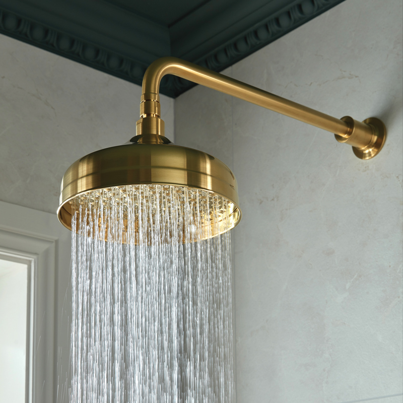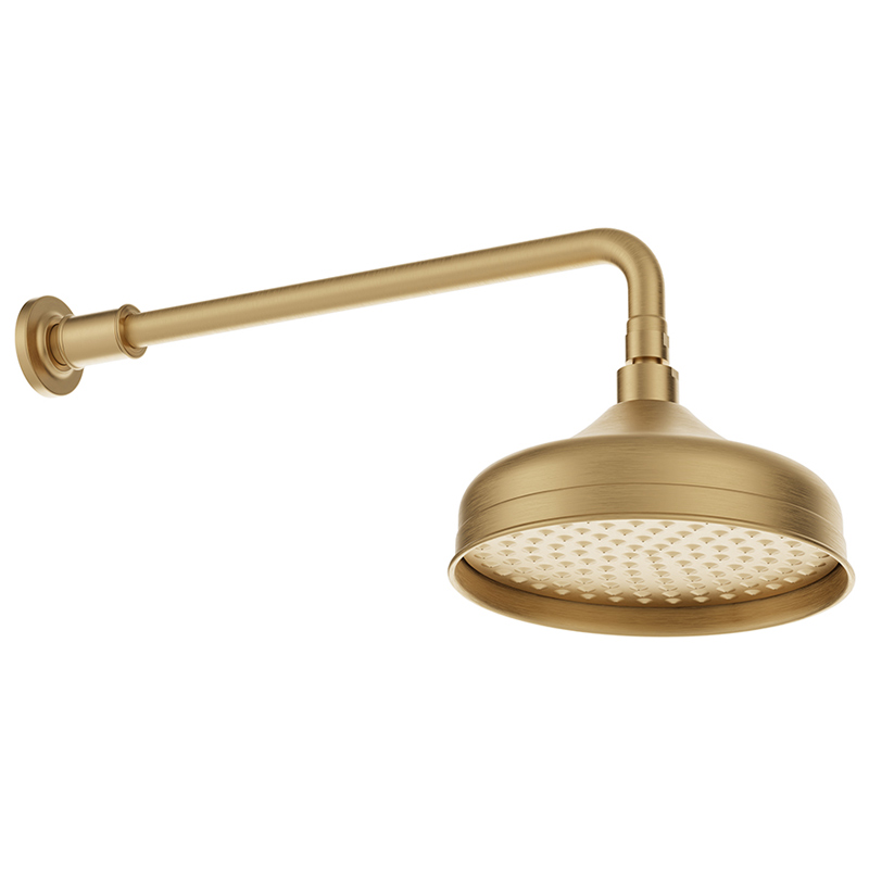 Deszczownica 200 mm z ramieniem ściennym - Mosiądz szczotkowany - Booth&Co. - Axbridge - BC-AXB-HEAD/SA-BRS