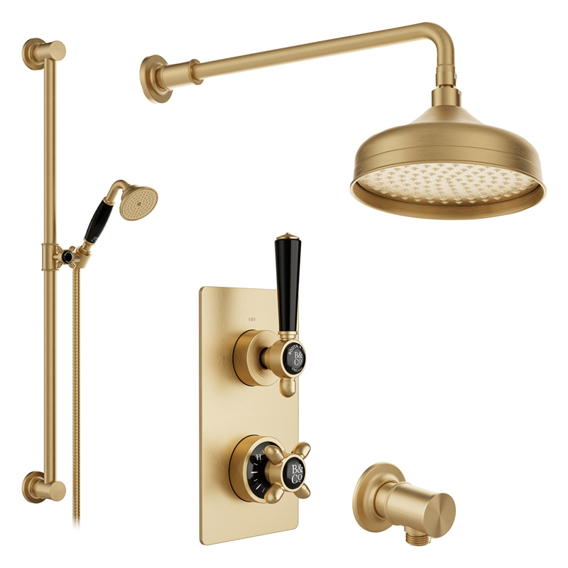 Booth&Co. - BC-AXB-148/2-B-BRS - Rysunek techniczny Booth&Co. - BC-AXB-HEAD/SA-B-BRS - Rysunek techniczny Booth&Co. - BC-AXB-OUTLET-B-BRS - Rysunek techniczny Zestaw prysznicowy z deszczownicą i słuchawką prysznicową na drążku - Mosiądz szczotkowany - Booth&Co. - Axbridge - BC-AXB-SS2-B-BRS