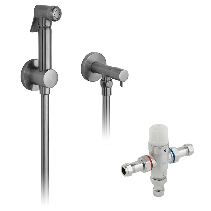 Bidetta z zaworem termostatycznym do zabudowy, Gunmetal Szczotkowany PVD - INDIVIDUAL by Vado - IND-SHATTAF/5001-BGM