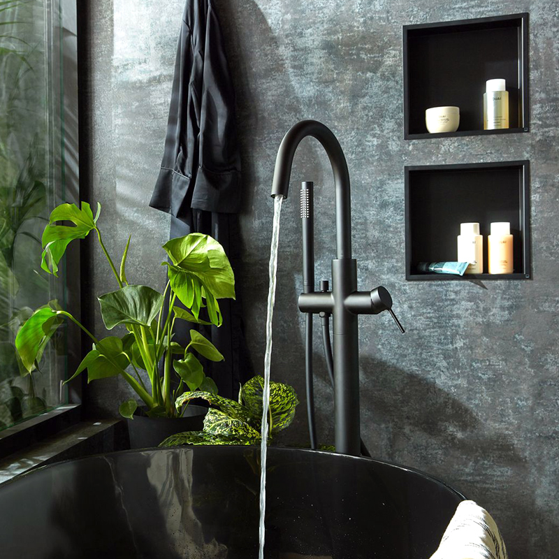 Bateria wannowa podłogowa z zestawem prysznicowym