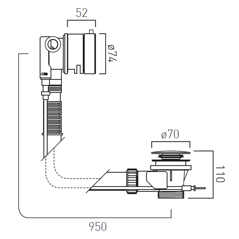 Odpływ wannowy z napełnianiem przez przelew, korek automatyczny